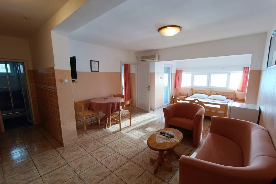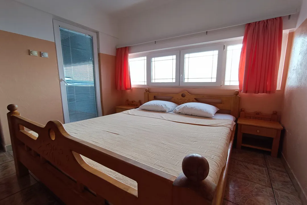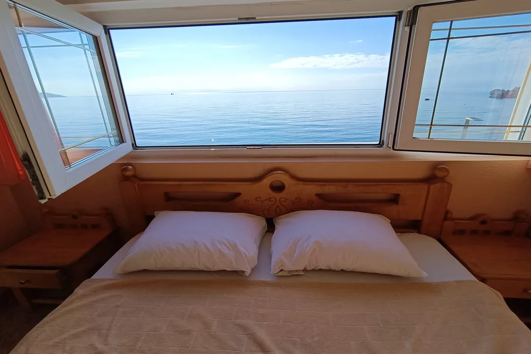 Jako fin apartman sa odvojenom spavaćom sobom, terasom i pogledom na more koje oduzima dah. Sve je veoma čisto, udobno, i opremljeno za vaš duži boravak. Apartman posjeduje jedan bračni krevet, dva manja kreveta za jednu osobu, i kauč koji može da se razvuče za spavanje.